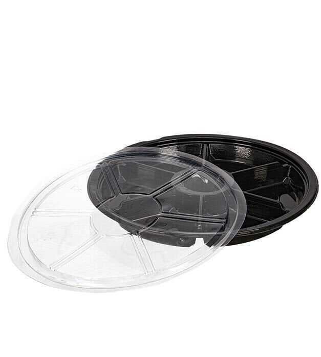 Gelince Haber Ver7 bölmeli, 26 cm çapında 4,5 cm yüksekliğinde, tek kullanımlık gıda kabı setidir.