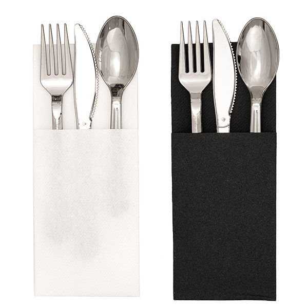 Garson Katlama Cepli Siyah Airlaid Peçeteler, restaurant, cafe, bar ve otellerin kumaş peçeteye alternatif kaliteli lüks peçete ihtiyacı için idealdir. Cepli olması çatal, bıçak, kaşık servislerinin sofralarda daha şık ve pratik sunulmasına yardımcı olur.
