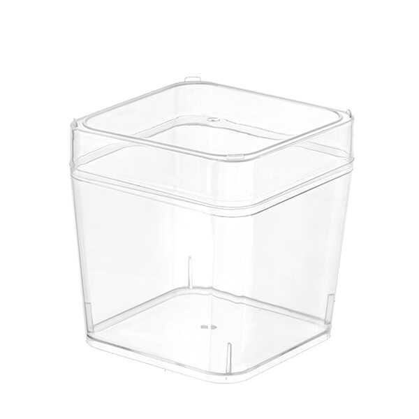 Ağız çapı 7,5 cm, taban çapı 6,7 cm, yükseklik kapak hariç 6,5 cm kapak ile beraber 8 cm uzunluğunda, 250 cc hacminde plastik kare şeffaf tatlı kabıdır.
