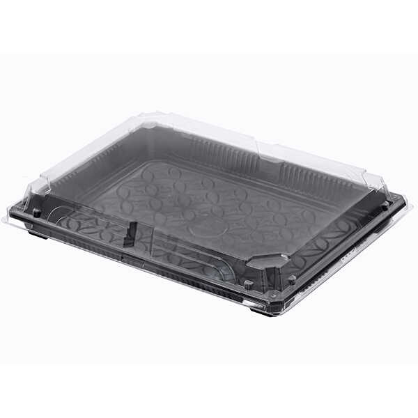 Gelince Haber VerSushi Servis Seti 275x205 mm, taban ölçüsü 27,5x20,5 cm, yüksekliği 5 cm, kaliteli, plastik, şeffaf kapaklı tek kullanımlık, sushi kabı setidir. Kap ve kapak beraber satılmaktadır.