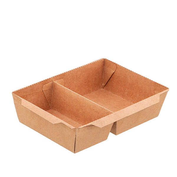 Gelince Haber Ver200-140 mm ağız çapı , 180-120 mm taban ölçüsü , yükseklik 50 mm sıcak ve soğuk ürüne uygun 2 bölmeli karton gıda kabıdır.