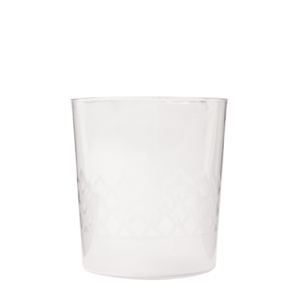 220 cc hacminde, 8 cm yüksekliğinde, 7 cm çapında, kaliteli plastikten şeffaf tek kullanımlık viski, meşrubat bardağı.